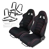 | ✚✚✚ DPT, RS-T1-LR+SBCL-4P-BK-X2, Pair of Driver/Passenger Fully Adjustable Reclinable Black Canvas Cloth Red Stitch Type R Style Bucket Racing Seats with 4 Points Black Safety Camlock Seat Belts Every tuned car focuses on performance or suspension, but if you are going to race, what good are those mods if you have no control over them? You will be constantly sliding on your factory seats at the corners, or leaning in the opposite direction of the way you're turning. It is time to get a pair of racing seats. With higher leg and upper body supports you'll be comfortably seated in the perfect position at all times and in all situations with reduces of the risk from misjudging distance and losing control. Racing seats are easy to install with the correct brackets (not included) and still offer the reliability of stock seats. These seats are also made for using with 4 or 5 point racing seat belt harnesses.