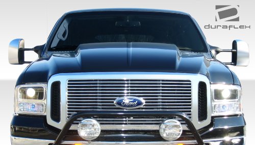 1999-2007 Ford F250 F350 Super Duty Duraflex Cowl Hood - 1 Piece?Every Extreme Dimensions product is manufactured to meet our exacting standards of quality and durability. Our manufacturing processes and experience allow us to offer these quality products at a reasonable price. With Extreme Dimensions, high quality doesn't mean high prices. Cars depicted are highly modified for show which may include molding or adding to the original piece. Parts such as lights, splitters, canards, paint, and others accessories are not included unless specified in the product description.