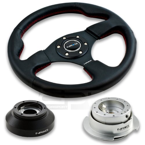 Features100% brand new, Never Been Tried or Installed12.5" / 320mm Black Leather with Red Stitching; ST-012RShort Hub Adapter; Direct Bolt-on Design, Perfectly fits Any Wheel with a 6-Bolt Standard Design; SRK-E30H. Please go to the NRG Website for Detail Application of the Hub AdapterNRG Brand Quick Release Generation 2.5; Ball Bearing Mechanism; SRK-250SLWill Require the Removal of Special Features from OEM Steering Wheel Such As Cruise Control and Air Bag NRG-SRK-E30H+012R+250SL, NRG Innovations 12.5" 320mm Black Leather Red Stitch Button Racing Steering Wheel Combo with 6 Hole Short Hub Adapter with Gen 2.5 Silver Quick Release Kit SRK-E30H?