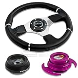 | ✚✚✚ NRG-SRK-120H+008R+650PP, NRG Innovations 13.78" 350mm Black Leather Racing Steering Wheel Combo with 6 Hole Short Hub Adapter with Gen 3.0 with Handle Purple Quick Release Kit SRK-120H NRG Quick Release features many options that conventional ball-locking quick release system do not. It is specially engineered with raised sections to prevent the scratching and stretching of the hub while a self locking feature adds increased safety and functionality. Features racing styled for added style and look. Each unit is made from the highest quality aircraft grade aluminum and is anodized for maximum durability and finish.