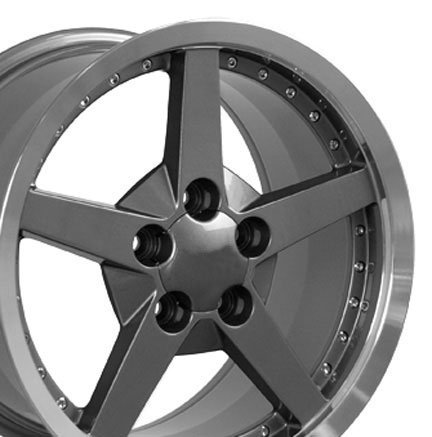 C6 Deep Dish Wheels with Rivets Fits Camaro Corvette - Gunmetal 18x8.5 Set of 4 .