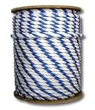 | ✚✚✚ Twisted Polypropylene Rope - By the Spool - 3/4" Diameter - 600 ft Our blue and white twisted polypropylene rope is noted for its buoyancy. It is lightweight, strong, and absorbs very little moisture. This rope is manufactured from rough Mono Filament which has been stabilized against the sun's ultraviolet rays.